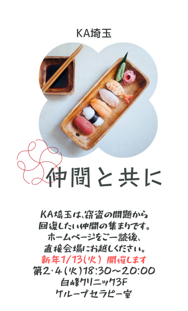 年齢、性別、職業、住所、学歴、地位、名誉などに関わらず、万引き・窃盗に依存しない新たな生き方をしたい仲間の集まりです。